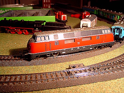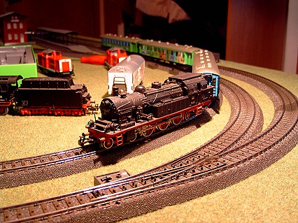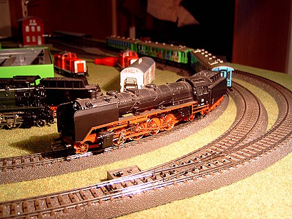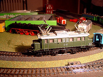 Und heute ging es weiter mit dem ausprobieren meiner analogen Loks. Es machte noch genau so viel Spaß als vor ca. 20 Jahren als ich meine Anlage abgebaut habe. Besonders schön war der "Sound" der E 44 und E 18. Leider habe ich keine Blechdonnerbüchsen drangehängt, weil die alle im Keller stehen und ich einfach zu faul war die rauf zu holen, aber auch so war der Sound klasse.