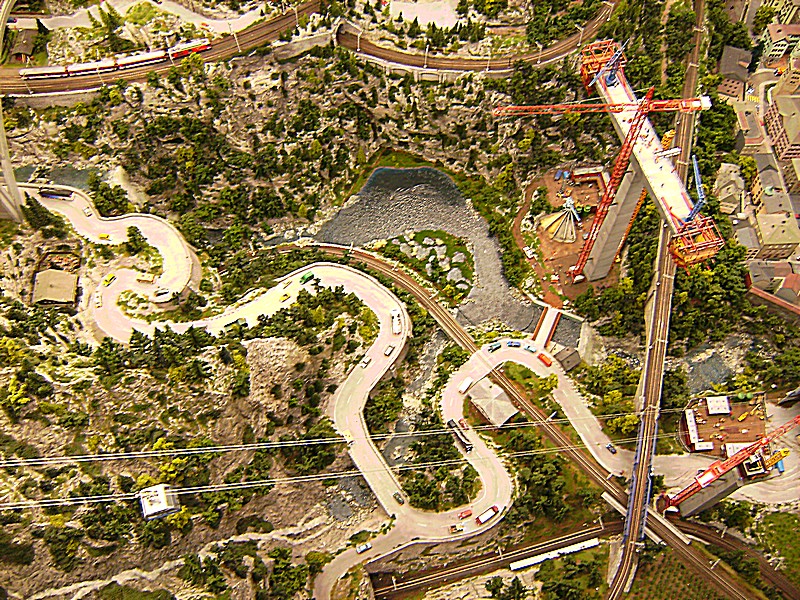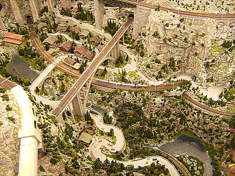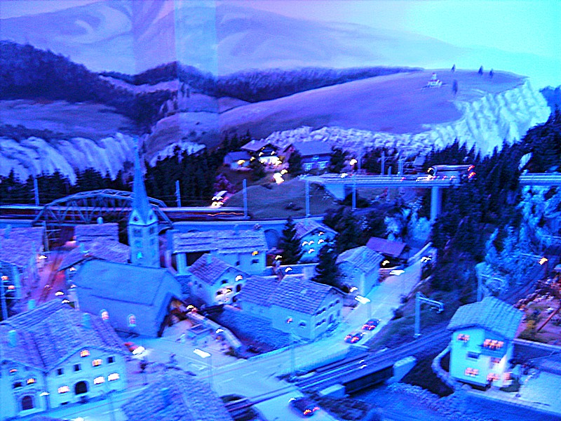 Beginnen möchte ich mit der Schweiz. Dieser Teil ist so gut gelungen das man fast nicht mehr in die richtige Schweiz reisen muß um zu erleben wie es dort aussieht. Der Blick von der Empore runter ins Tal ist genau so wie in der Wirklichkeit. Freddy fragte mich wie mir der Schweizer Teil gefallen würde und ich konnte nur sagen "Oberaffengeil" und das ist noch untertrieben.
