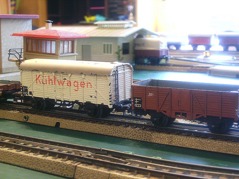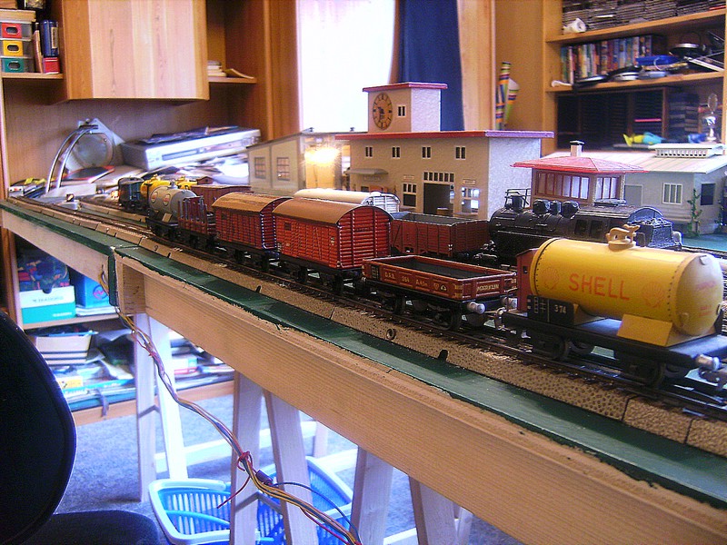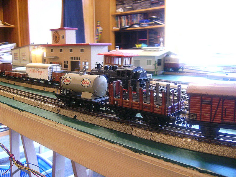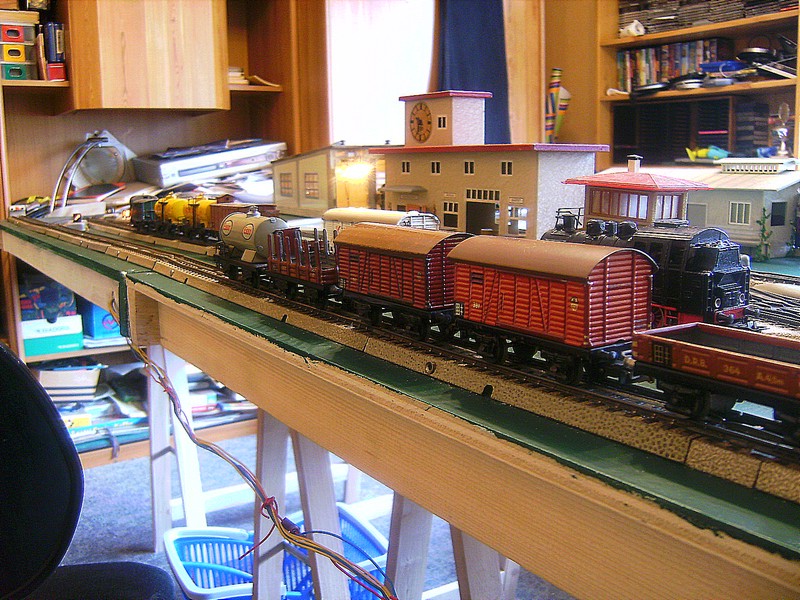 Dazu hatte ich noch einen Güterzug mit der TM 800 und 7 Gußwagen im Einsatz Laughing Laughing Laughing Man war das ein toller Sound als beide über die alten Blechgleise rumpelten.  Vielleicht können jüngere Menschen das nicht verstehen, aber ich verbinde das laute Rasseln und Rumpeln mit der Modellbahn meiner Kindheit und das möchte ich auch im digitalen Zeitalter nicht mehr missen. Vielleicht bin ich ja schon senil und gehöre ins Altenheim aber es macht einfach großen Spaß diese Züge fahren zu sehen