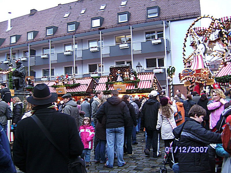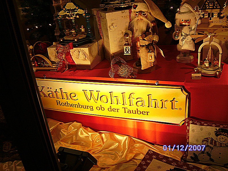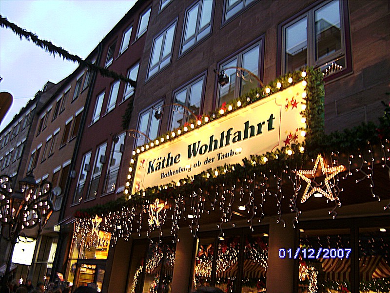 Käthe Wohlfahrt hat in der Weihnachtszeit in Nürnberg zwei Läden und beide waren so voll das einige Leute schon auf der Straße stehen mußten. Das Gedränge auf dem Christkindlesmarkt wurde nach Einbruch der Dunkelheit ganz enorm und man kam mit 5 Personen immer in die Gefahr sich zu verlieren, aber wir haben es geschafft zusammen zu bleiben ich frage mich immer noch wie wir das geschafft haben.