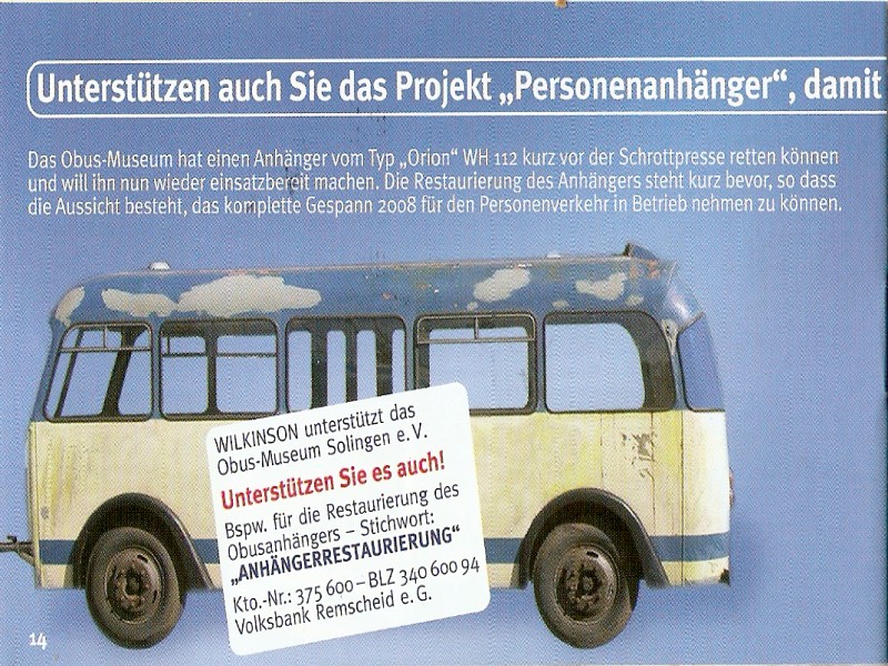 Über dem rechten unteren Bus kann man noch erkennen, das da eine Hülle ist. In dieser Hülle steckte noch ein kleines Begleitheftchen mit interessanten Dingen rund um diesen alten O-Bus. Die ersten sieben Seiten sind natürlich Werbung für Wilkinson, aber da kann man getrost drüber hinwegsehen.