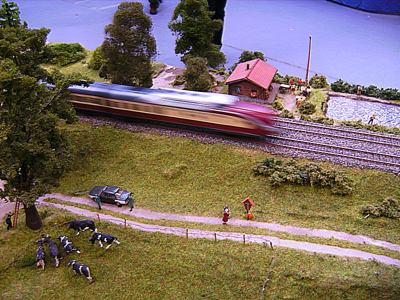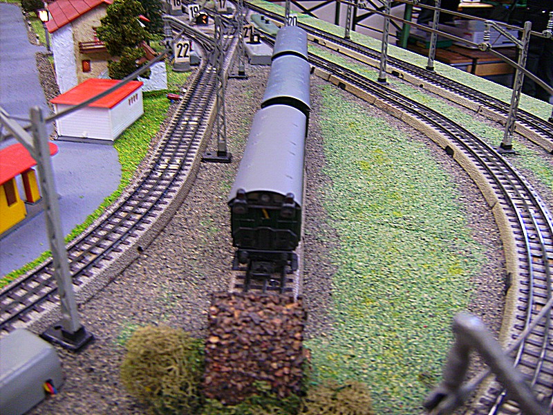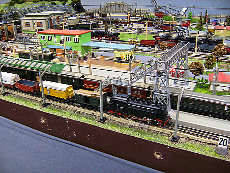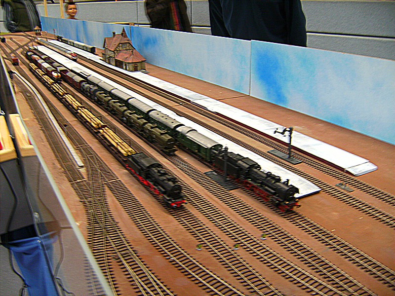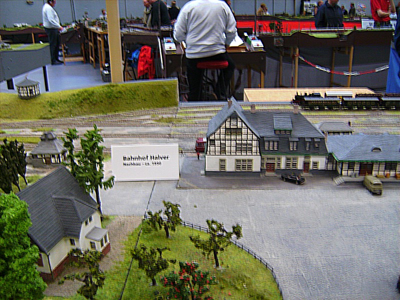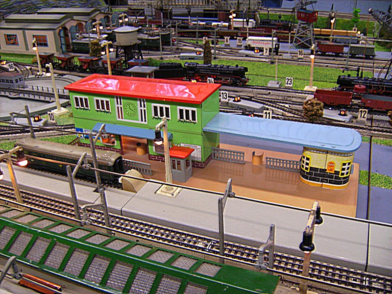 Als erstes kommt eine sehr schöne alte Märklin Anlage, auf der auch ein 3025 seine Runden gedreht hat, aber leider erst als ich die Fotos schon gemacht hatte. Den habe ich wohl auf einem kleinen Video. Diese Anlage war für mich als Nostalgiker der Höhepunkt der Ausstellung.