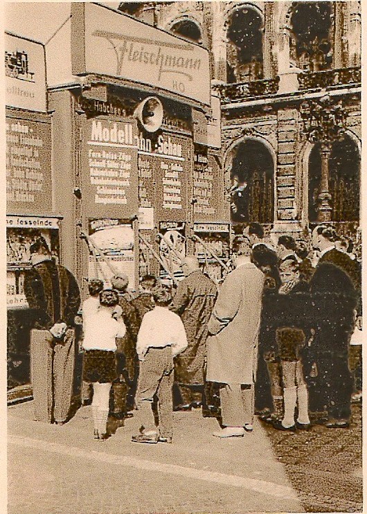 Im Jahre 1962 erfolgte der Umbau der Anlage auf das Fleischmann System, bei gleichem Gleisplan. Auch der Wagen wurde von außen verändert, der Holzaufbau wurde mit Metallplatten verkleidet. Damit fuhr Otto Hübchen bis zum Jahr 1969 durch die Lande. Hier auch noch 2 Bilder der Fleischmann Anlage