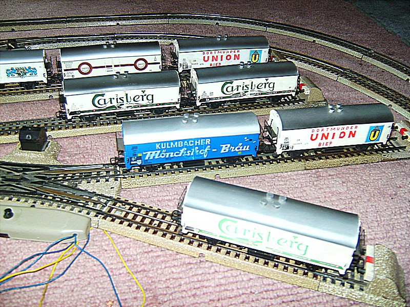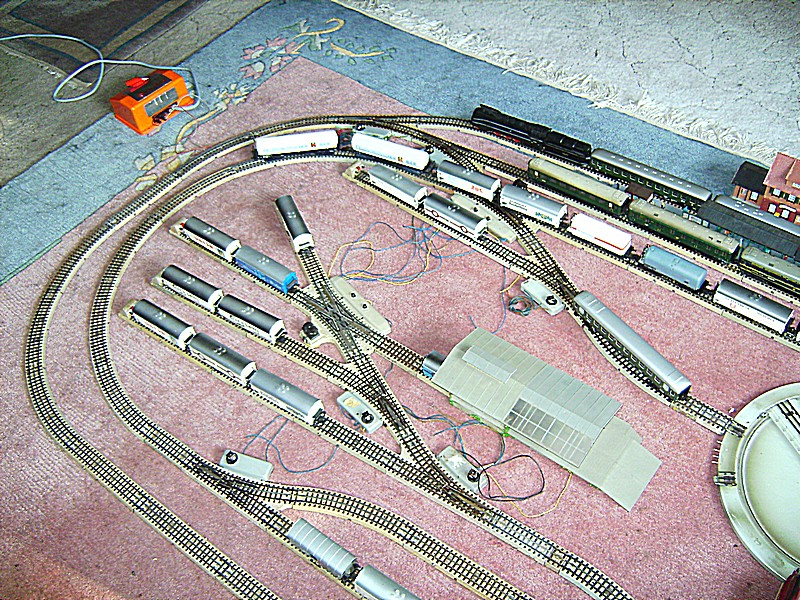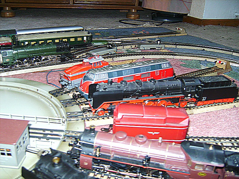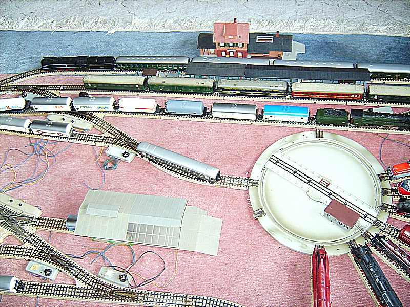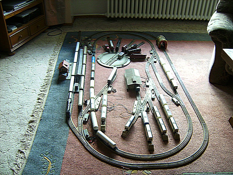 Heute morgen habe ich meine geplante Nostalgie Anlage zum 3. Mal auf dem Teppich im Wohnzimmer aufgebaut. Dieses Mal aber so wie sie einmal werden soll. Es fehlen nur noch wenige Prellböcke und der Lokschuppen, der mir aber im Moment noch zu teuer ist. Es soll natürlich auch der ganz alte sein , also nicht der graue sondern der Beige mit blauem Rand und blauen Toren. Leider gehen gerade bei diesem Schuppen die Preise, nicht nur für gute Exemplare, sehr hoch und das sitzt im Moment nun mal nicht dran. Aber es werden auch wieder bessere Zeiten kommen und dann werde ich bei einem guten Preis zuschlagen.