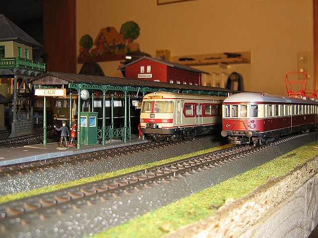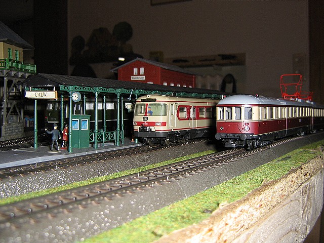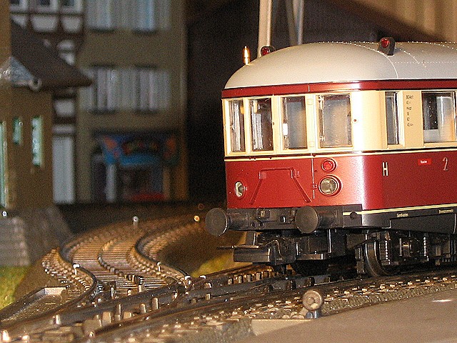 Auch der R 1 des Märklin C-Gleises wird problemlos durchfahren, nur bei den Bogenweichen springen öfter die Räder aus den Schienen, was wohl daran liegt das der ET 25 sehr leicht ist. Selbst eine Piko Hobby Lok ist deutlich schwerer. Mal sehen was man da machen kann, vielleicht könnte da etwas Blei Abhilfe schaffen.