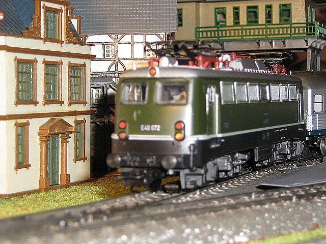 Die E 40 hatte ihre erste Fahrt bereits am Freitag Abend bei unserem MIST 47. Die Lok läuft wunderbar leise und seiden weich. Mit den Silberlingen von Roco macht sie eine sehr gute Figur, wie man auch auf den Bildern sehen kann.