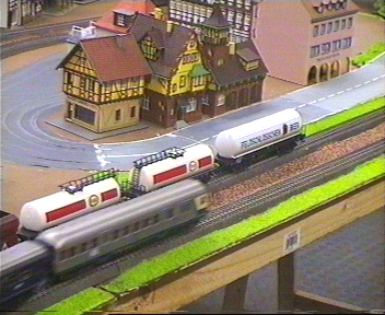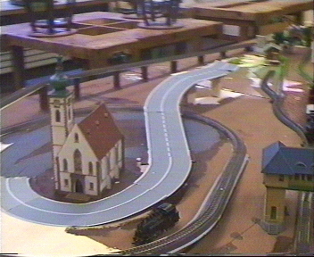 heute möchte ich über den Tag der offenen Türe , im November 2002 berichten. Wir hatten wochenlang für diesen Tag gearbeitet und gegipst, was das Zeug hielt. Wir wollten unbedingt die Straße des Car Systems fertig bekommen, so dass wir einige Autos fahren lassen konnten Wir hatten es auch geschafft, doch als wir an dem Tag die Anlage aus dem Abstellraum holen wollten, blieb uns fast dass Herz stehen. Unsere in wochenlanger Arbeit geschaffene Car System Strasse war auf einer Länge von ca. 1,20 m abgerissen worden