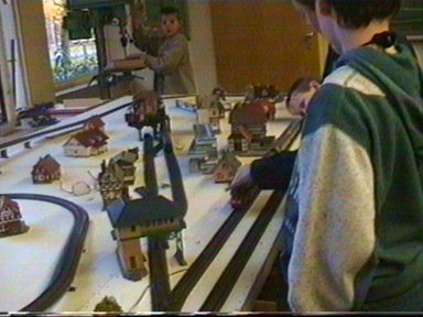 Die Auffahrt ist fertig montiert und dem Probebetrieb steht nichts mehr im Wege. War das ein Spaß für die Kinder, als erstmals auch einige Häuser auf der Anlage standen, natürlich noch nicht an der richtigen Stelle sondern einfach wahrlos hingestellt. In der nächsten Woche werden wir den Gleisplan noch etwas verändern. siehe Plan.