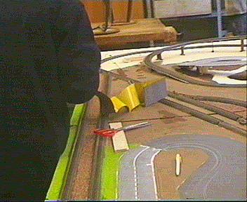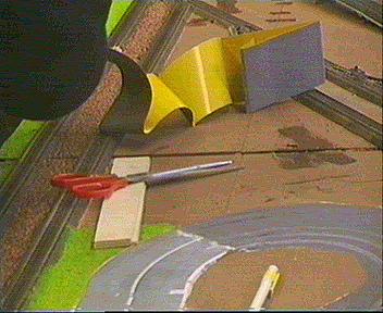 unter der Schere liegt ein Stück vom Bahnsteig |