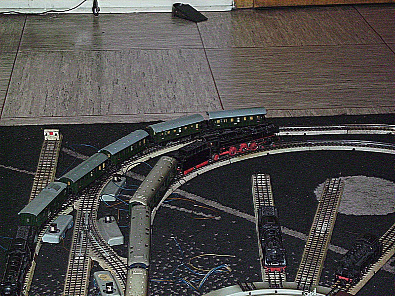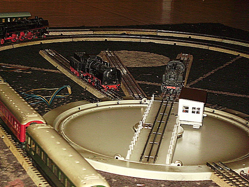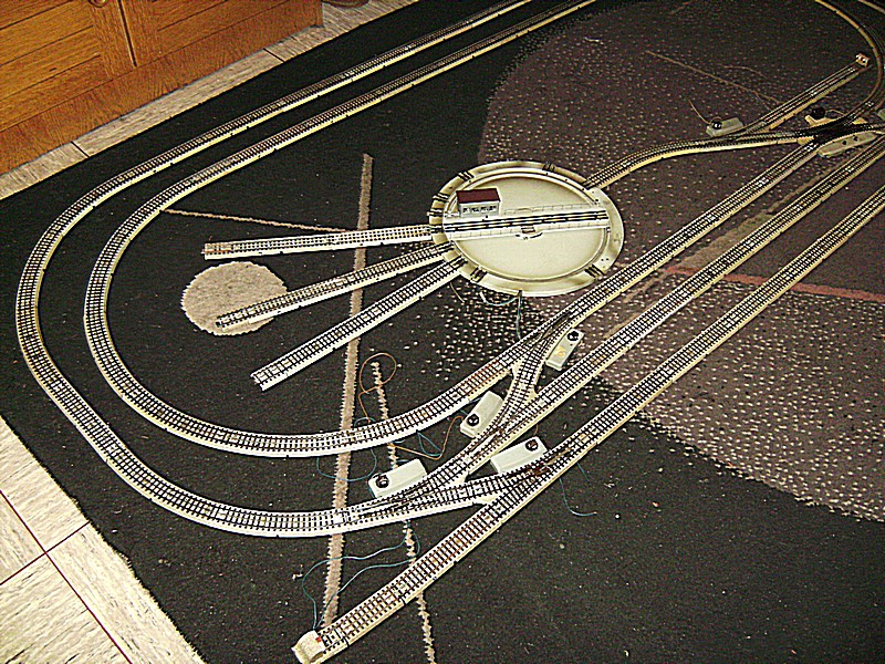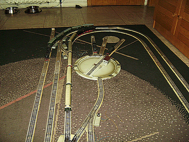 Heute habe ich einmal zur Probe meine geplante Nostalgie Anlage auf dem Teppich aufgebaut, um zu sehen was mir noch an Schienen fehlt. Dabei hat sich auch rausgestellt das die Drehscheibe nicht so eingebaut werden kann wie es der Plan zeigt.