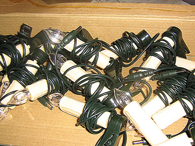 Diese Kerzen haben alle ein eigenes 1,30 m langes Kabel mit einem Stecker, der in einer Verteilerbox angeschlossen wird. Diese Box wird einfach in der Mitte des Baumes an den Stamm an einen Zweig gehängt und ist damit unsichtbar. Vor allen Dingen kann man hier auch nur eine einzige Kerze anstecken und sie brennt, was bei einer der herkömmlichen Lichterketten unmöglich ist. Ich erinnere mich noch gut dran was wir früher immer mit der Lichterkette gekämpft haben bis die Kabel endlich alle entknäult waren. Vor allen Dingen waren das in der Regel nur 20 Kerzen und man mußte immer von unten nach oben und dann wieder runter verlegen, weil ja beide Kabel wieder zusammen kommen mußten. Auch hatte man häufig vergessen welche Birne man am Abend rausgedreht hatte denn schließlich wolle ja niemand immer unter den Baum kriechen um den Stecker aus der Wand zu ziehen.